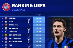 体育资讯4月17日讯 德国转会市场统计了各队本赛季的欧战积分,并列出榜单,阿森纳36分居首,国米、巴萨、维拉二到四位。 本赛季欧战积分排名(截至4月17日): 阿森纳——36.000 国米——35.750 巴萨——35.250 维拉——30.250 利物浦——29.500 多特——27.750 拜仁...
